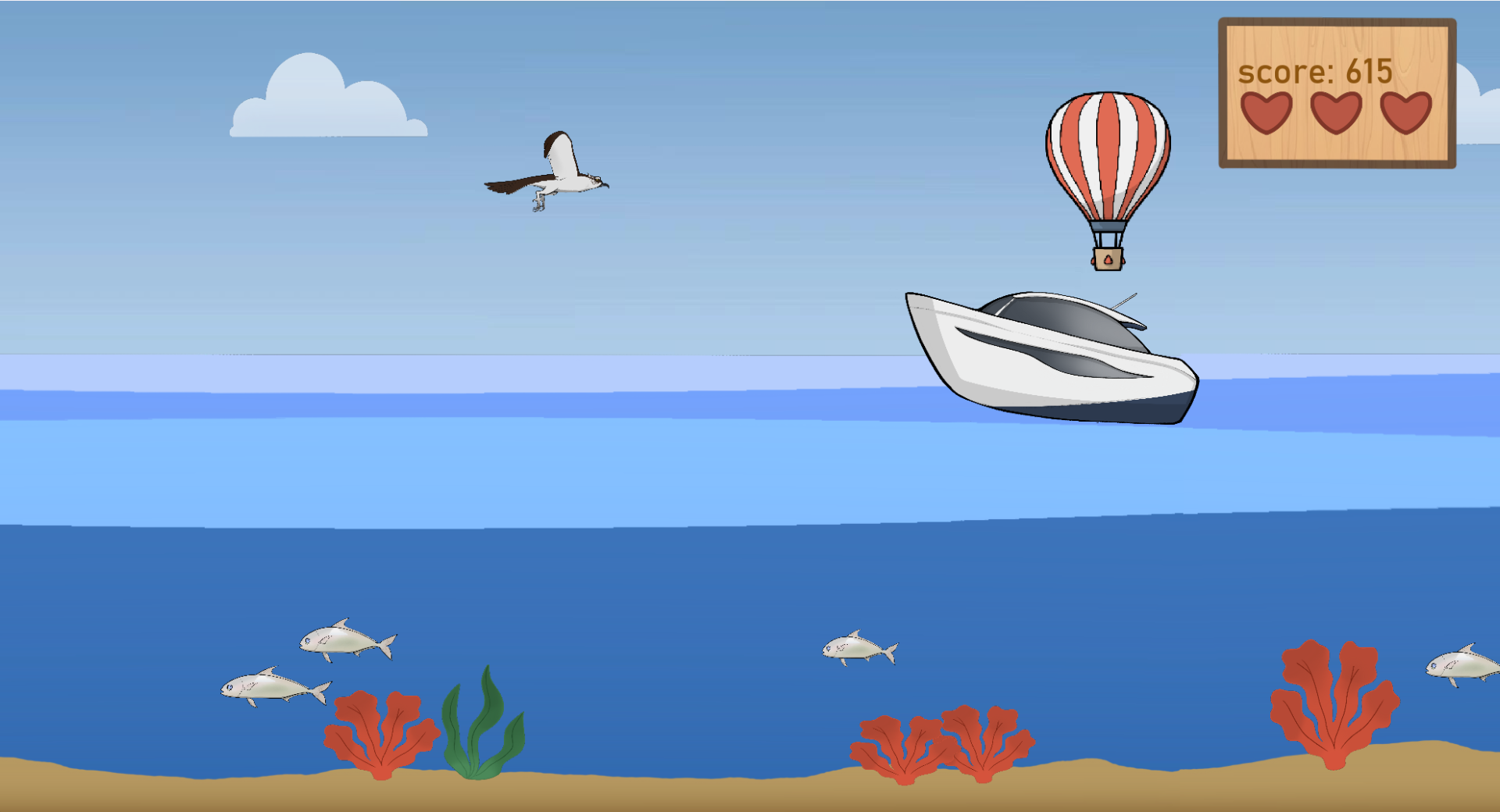 Ospreys want to feed their family! Let the osprey grab fish to get score and be careful of the obstacles!